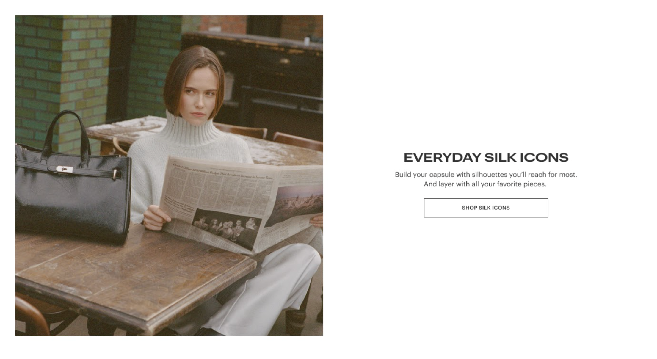 [SMS] IN THE CITY, IN SILK. Iconic silk pieces rooted in ’90s minimalism. Designed to take you anywhere. Made to layer with (almost) everything. SHOP THE SILK ICON CAPSULE: